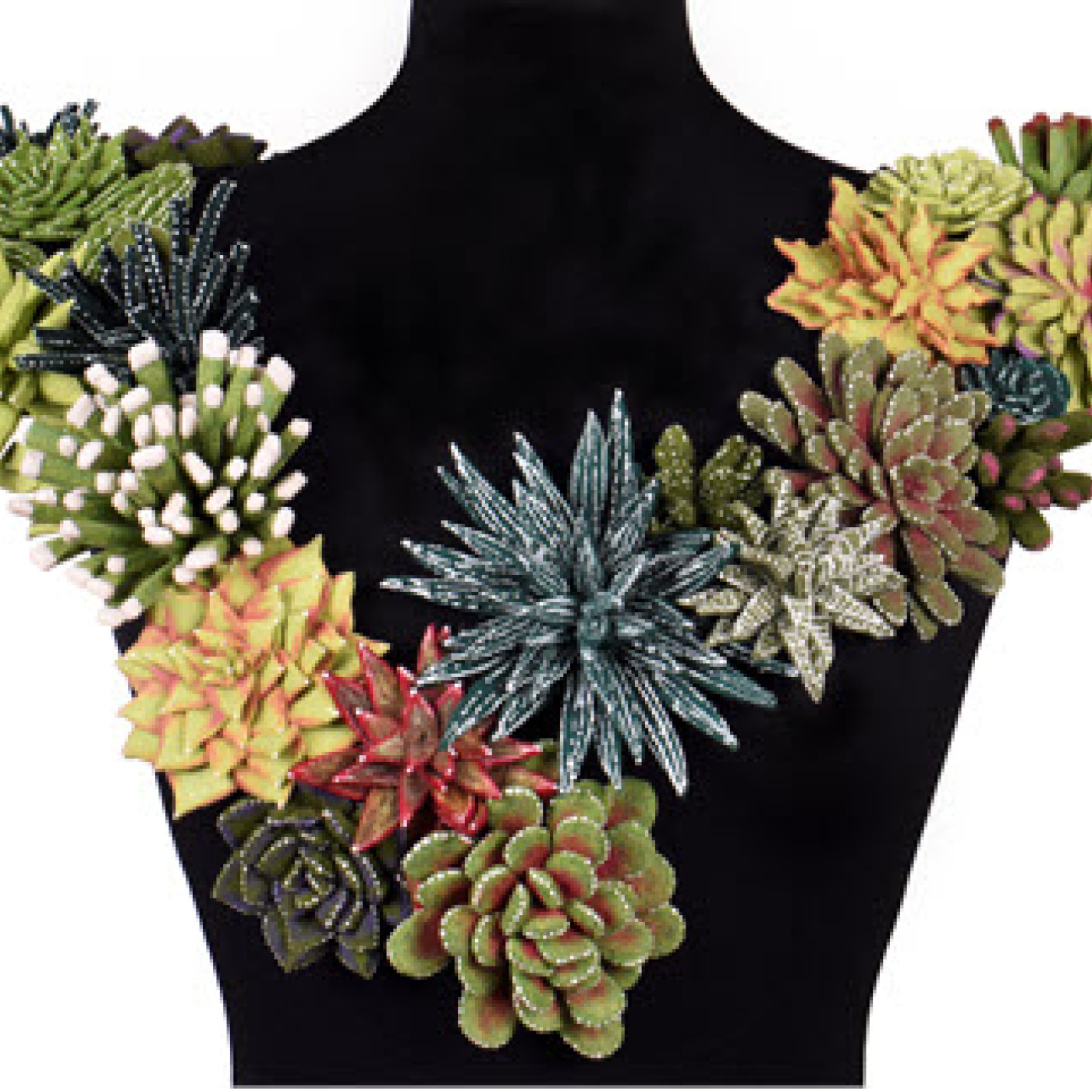 You could wear a plain black outfit, add one of Danielle’s stunning collars, and be noticed by every single person you meet all day. You can see these showstoppers on her website, www.studiodgm.com, as well as so many of her fun pins and rings.