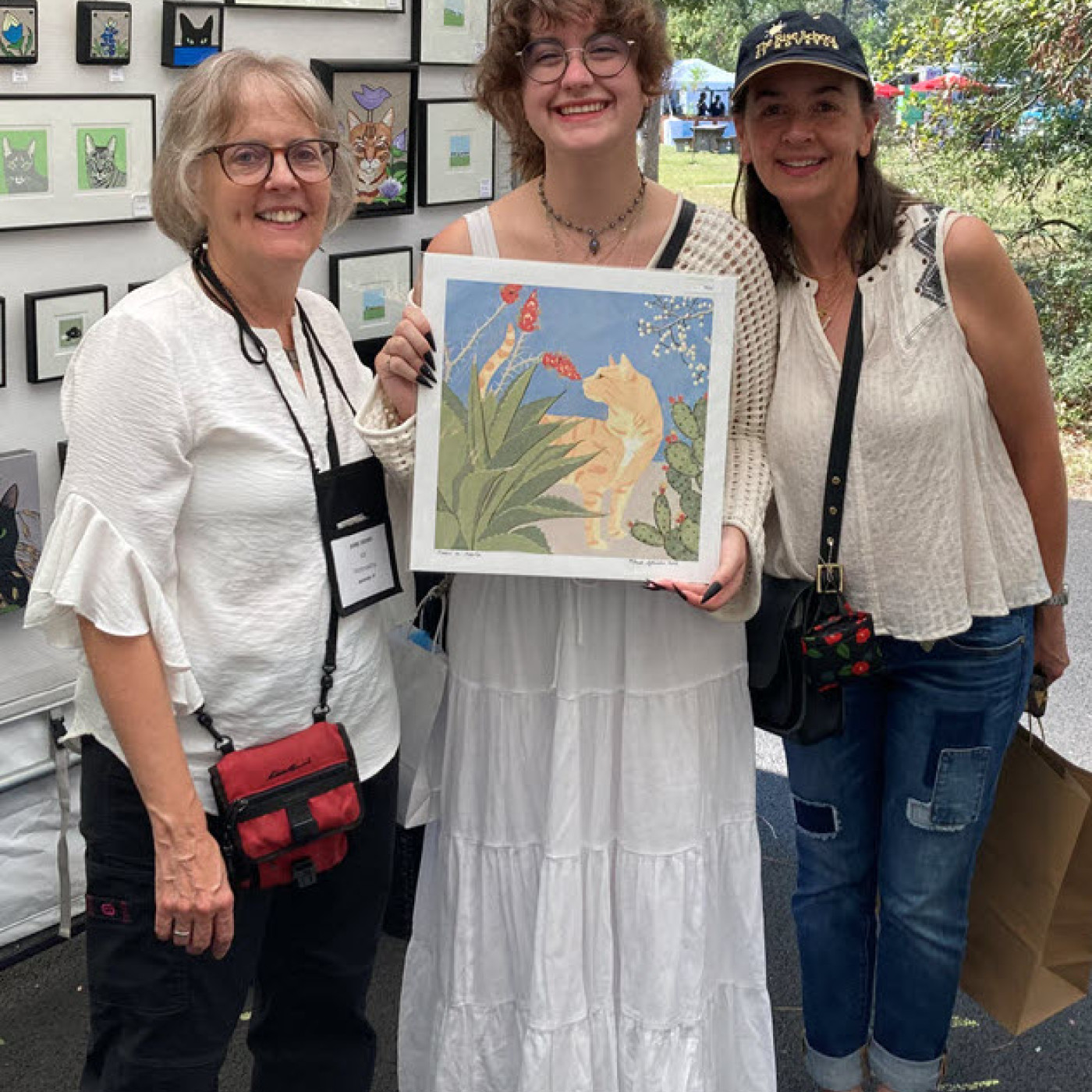 I’ve seen other artists look at their phones or read a book, which I don’t think is a great idea. And rarely, I’ve seen artists get angry and start packing up their booth early, which I think is a terrible idea. Show promoters can do all the right things to market a show, but they cannot control the weather or make people attend their events. I love to see artists take a slow time and set up their easels and paint. It’s such a great idea to use their time to make more inventory! As a printmaker, I’m not able to do that!