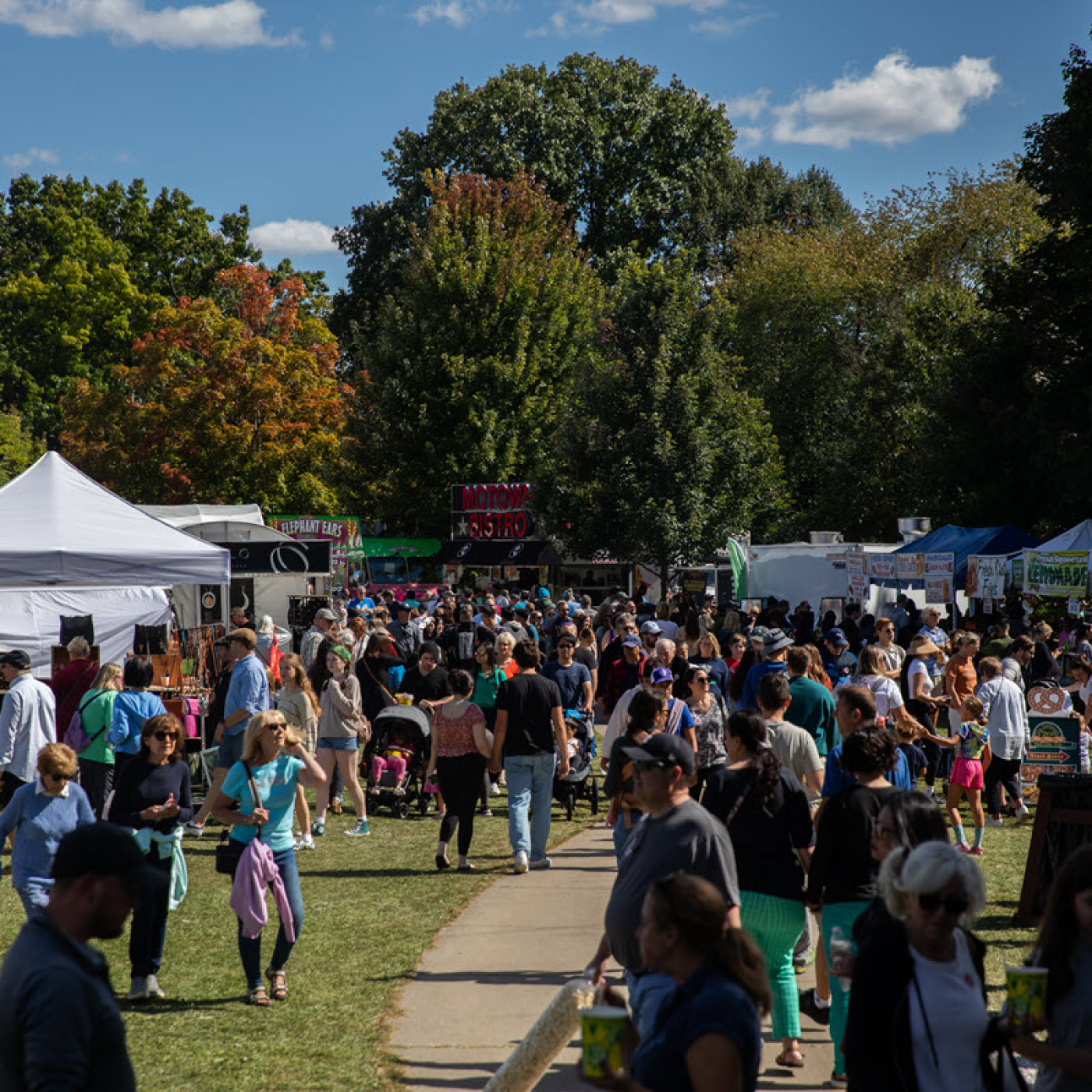 While our music stage is a big draw for our community, there is a clear divide from the music stage and the artists, with a row of food trucks separating them on one end and Paint Creek Center for the Arts separating them to the south.