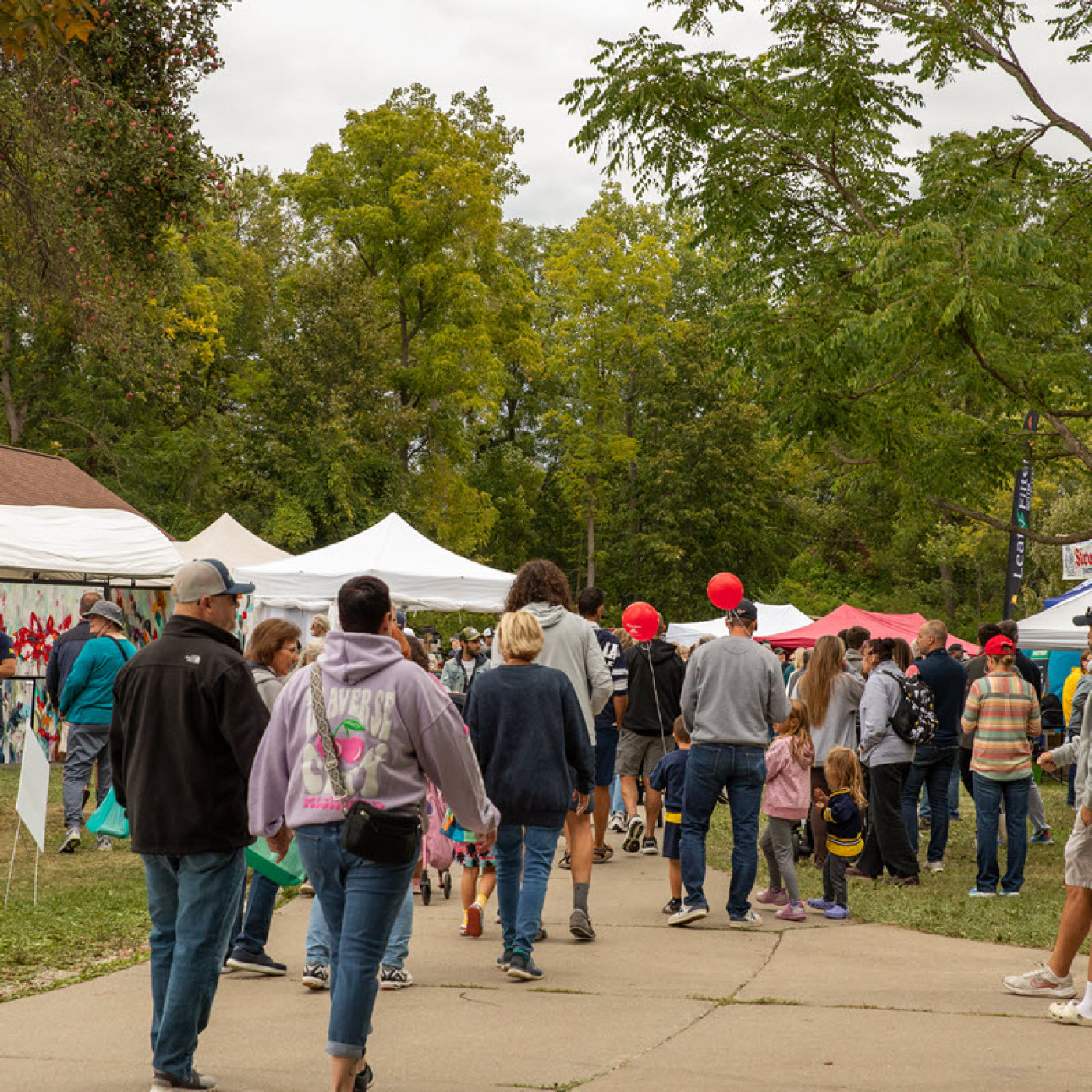 The Art & Apples Festival has taken place in Rochester Municipal Park since 1965. This can be a unique setup for some artists, as they can often be setting up on a grassy, non-flat surface. Small imperfections should be expected when setting up a tent in a park like ours.