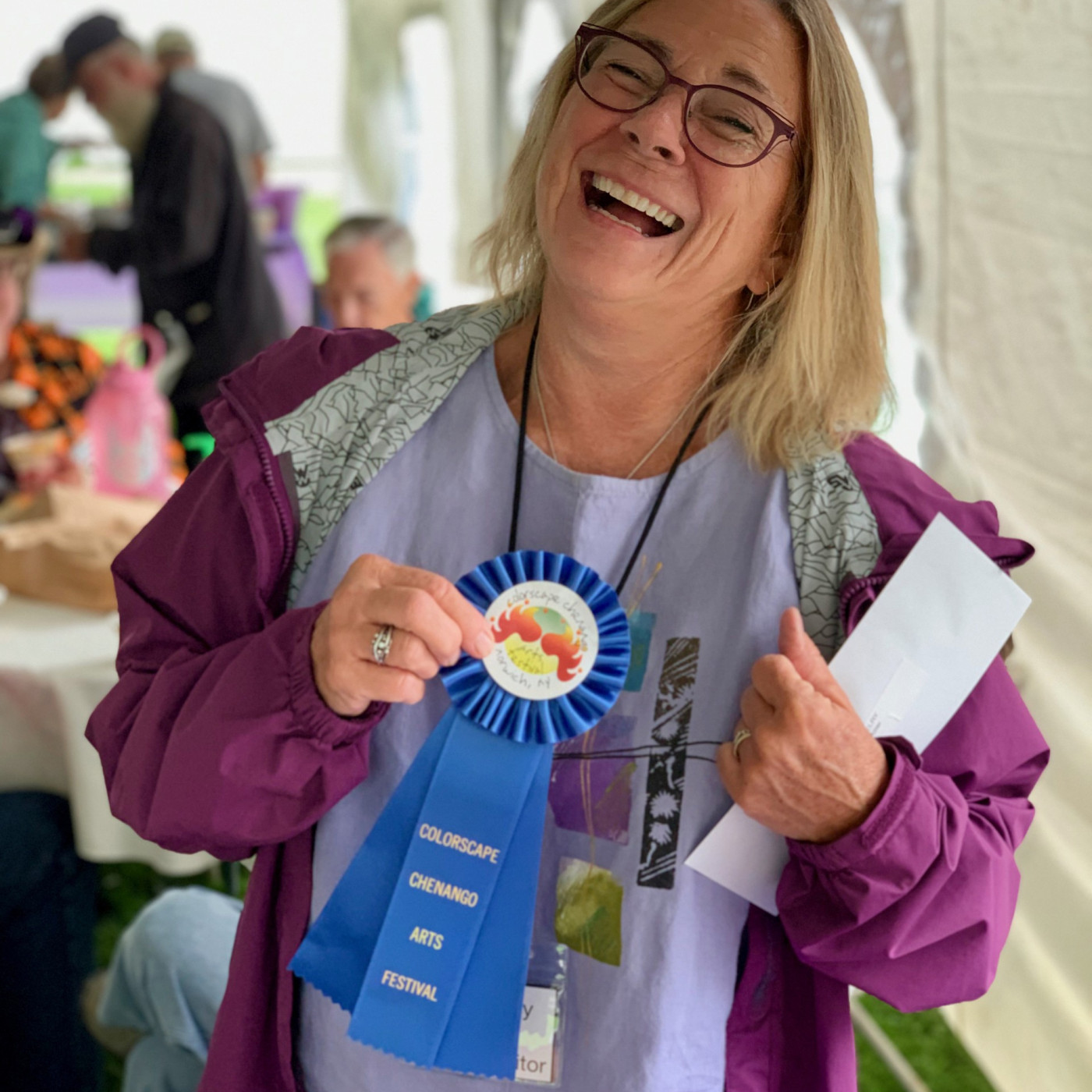 After the breakfast, ribbons and checks are awarded to the Emerging Young Artists, who receive scholarship awards and Golden Artist Colors gift certificates. The visual arts coordinator then announces and distributes ribbons and some $5,000 in awards to the artists deemed the best of the best in each of 15 categories, plus the Best Booth and Best of Show winners.